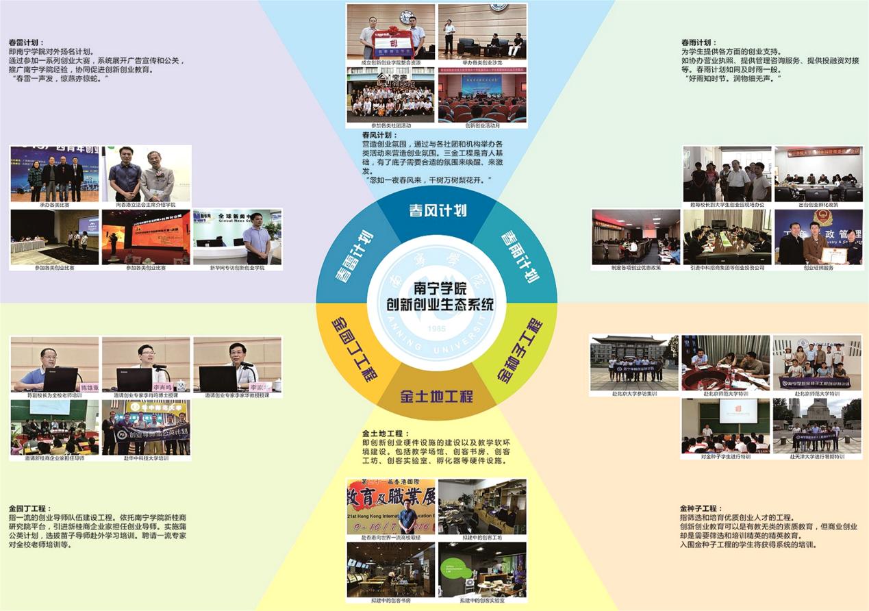 金种子工程,筛选优秀的创新创业种子进行针对性的重点培育,实施各类创新创业训练项目,先后培育出“广西校园创业明星”农进亮以及宁恒、江火凤、覃柳琳和王秋枫等优秀的创新创业好苗子。