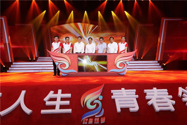 与会嘉宾共同触摸显示屏正式启动中国“青年红色筑梦之旅”