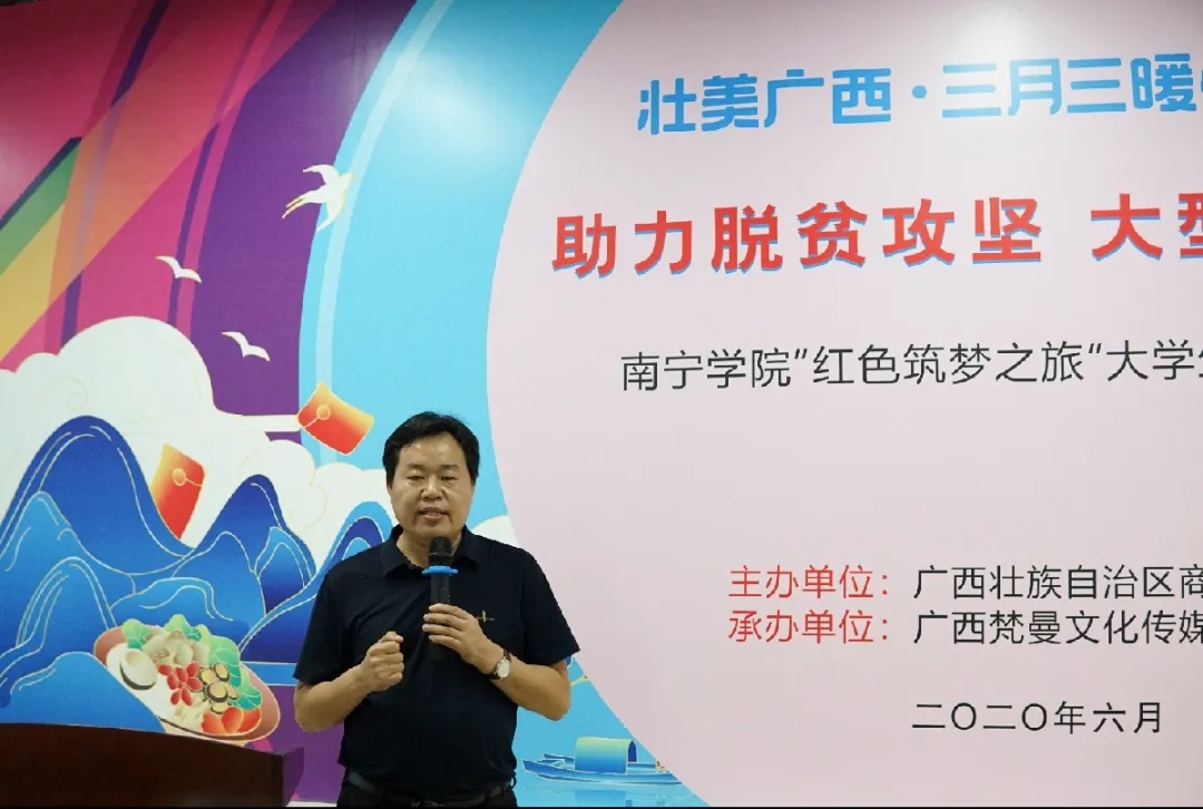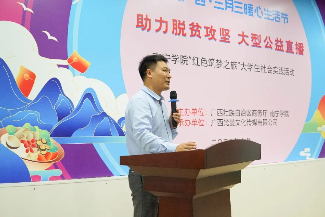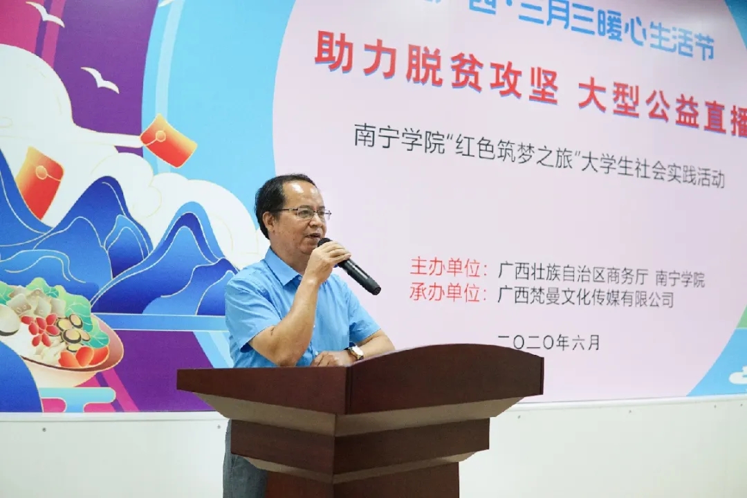 6月3日下午,南宁学院在大学生创业园开展助力脱贫攻坚大型公益直播暨“红色筑梦之旅”社会实践活动启动仪式。