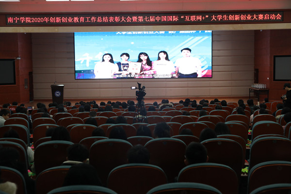 会议开始,全体师生们通过观看年度创新创业教育工作总结短片,了解了在这困难重重的一年中,南宁学院全体师生团结一致,砥砺前行,在创新创业方面收获了丰硕的成果。
