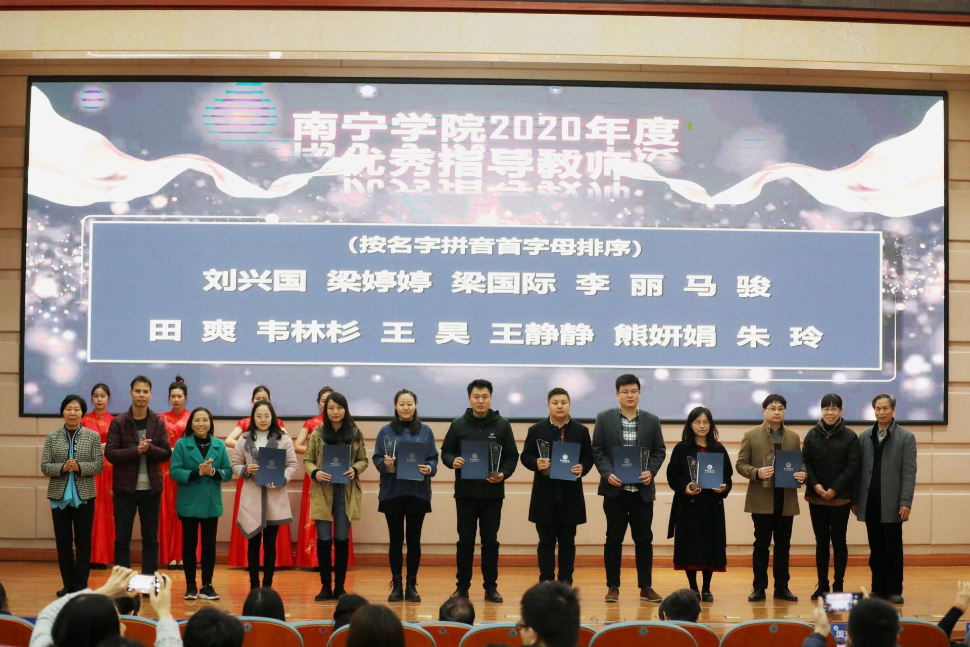 随后,学校领导及各单位、部门负责人为在2020年中获得学科竞赛一类赛事国家级奖项的师生及第六届中国国际“互联网+”大学生创新创业大赛的获奖团队颁奖。我校在2020年共获得学科竞赛一类赛事国赛奖项18项;获得第六届中国国际“互联网+”大赛全国银奖1项、全国铜奖1项,自治区级金奖3项、银奖8项、铜奖30项,这是全体南院人共同努力的成果。