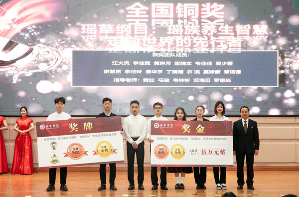 陈雄章副校长为获得第六届中国国际“互联网+”大学生创新创业大赛全国铜奖的项目颁奖