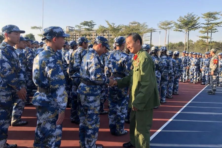 眼下正值我校开展军训活动时期,梁老英雄走到训练场与教官、同学们见面,同学们都争先恐后跟梁老英雄握手,对梁老雄表示热烈的欢迎与崇高的敬意。
