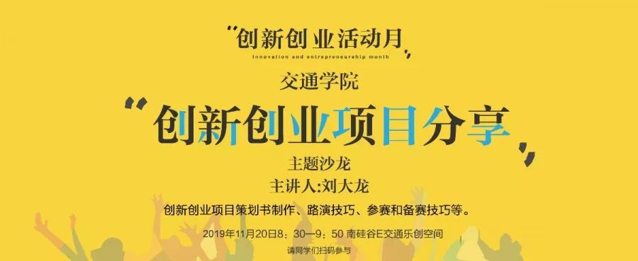2019年11月初,由创新创业学院发起的“创新创业活动月”活动正式开启。活动月启动以来,各个学院都开展了各式各样的创新创业活动,宛如一阵适宜的“春风”,激起了同学们创新创业的热情。