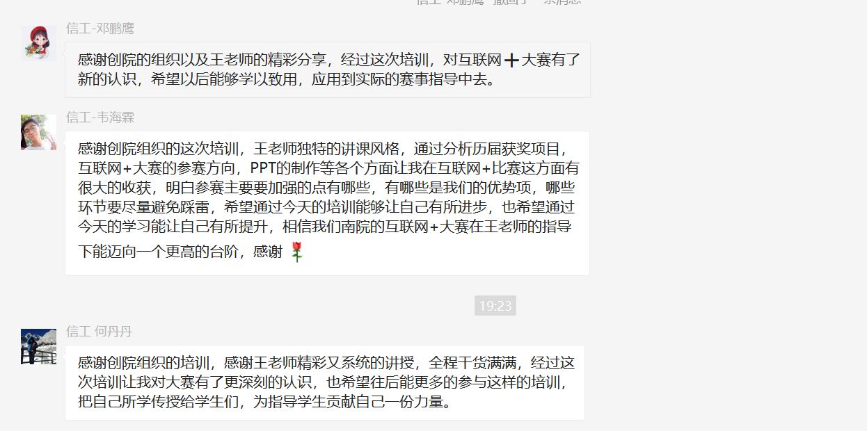“互联网+”大赛作为全国知名度最大、国家重视度最高的大学生创新创业大赛,是学生最大的、最有温度的社会实践平台。以赛促教、以赛促创,把大赛作为一场最有激情的社会实践金课,是我们创新创业教育工作者所追求的目标。传递火炬,点燃激情。未来,创新创业学院将会为更多的老师们提供磨炼机会与平台,点亮更多创新的思想,让梦想的火焰通过“金课”不断相传,不断被点亮。(文/图:李梓昕 创新创业学院 审核/校对:黄如)