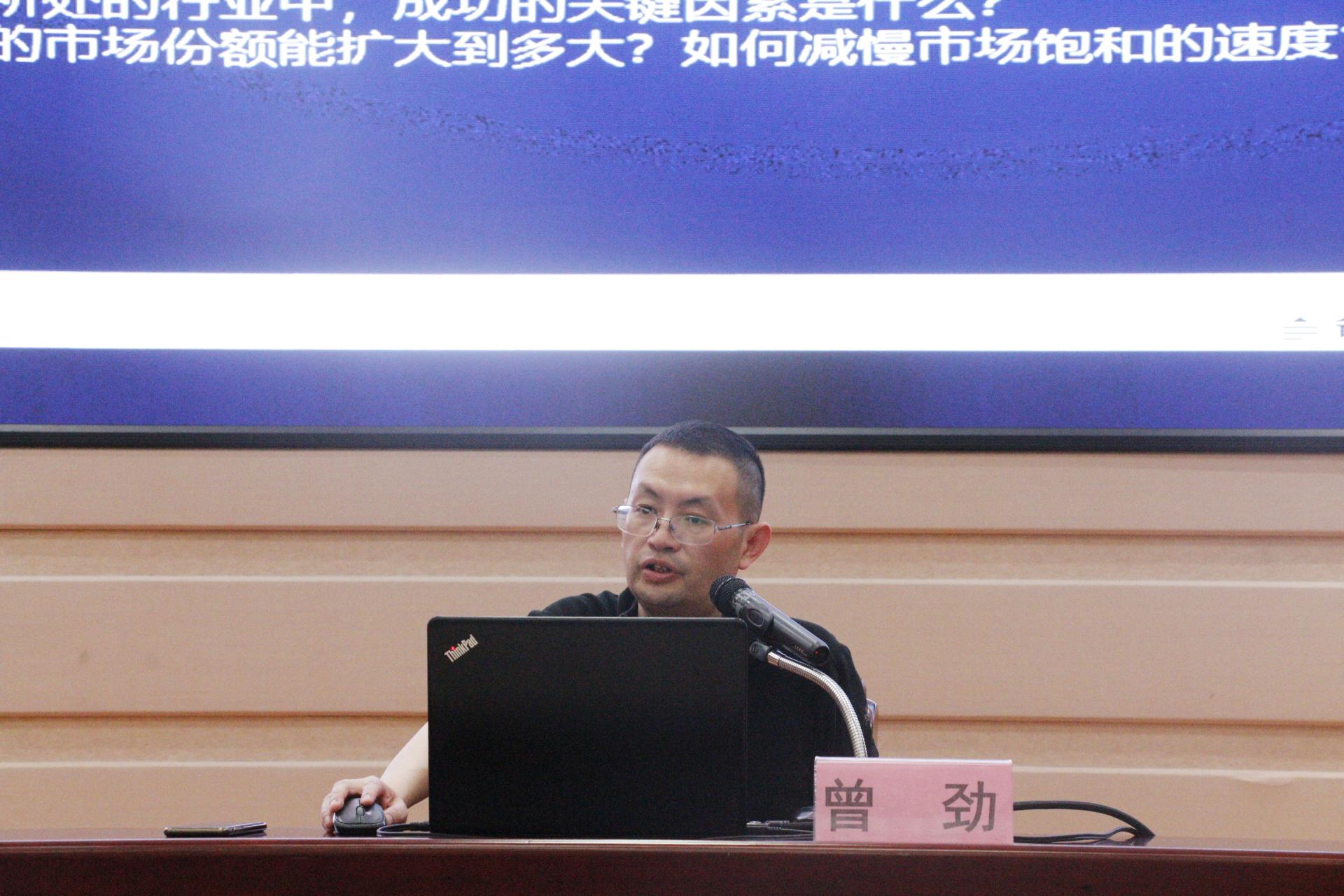 培训开始,曾劲老师展示了第六届“互联网+”大赛主赛道获金奖项目的分布情况,用大数据分析了获奖项目的类别、特点等,重点介绍了寻找项目的来源与方法。他讲到,项目的来源分为几大类,其中常见的是学生自主创业类项目、家族产业类项目等。师生们需要充分发挥学校学科优势,寻找地区特色,结合现有社会趋势选择合适的商业模式,才能挖掘到拥有好的基因的创业项目。随后,曾劲老师分享了最新的典型金奖案例,在场的师生们表示收获良多,颇有感触。