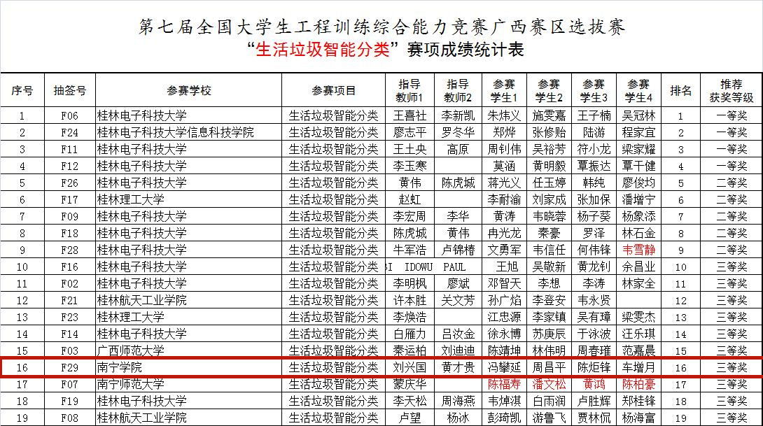 南宁学院团队获生活垃圾智能分类赛项 三等奖1项