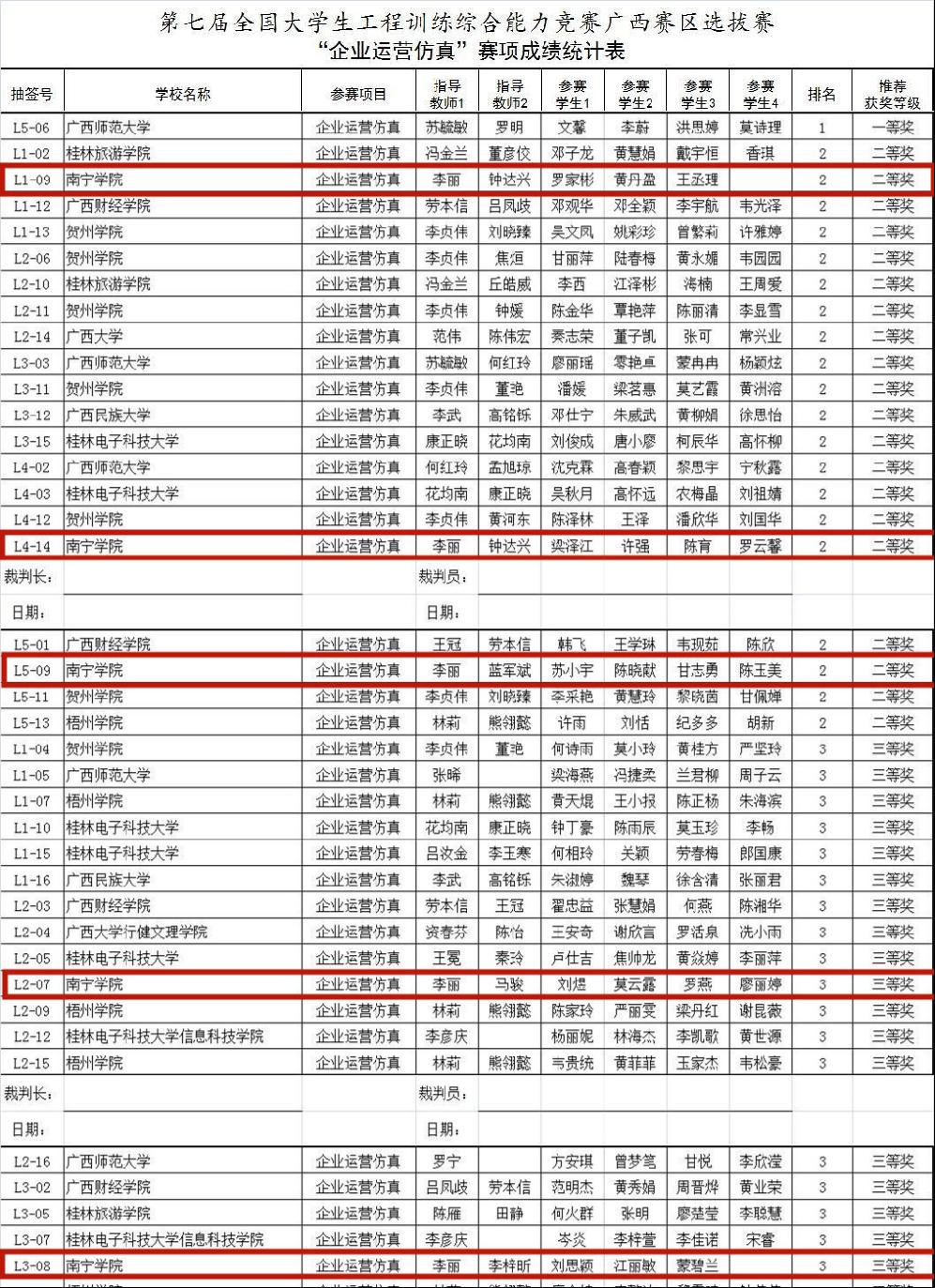 南宁学院团队获企业运营仿真赛项 二等奖3项、三等奖2项