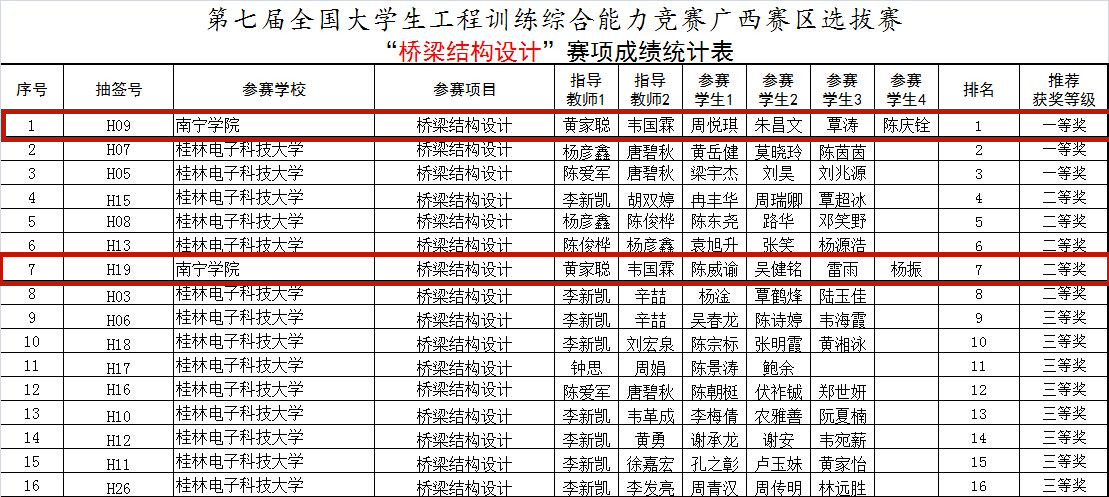 南宁学院团队获桥梁结构设计赛项 一等奖1项、二等奖1项