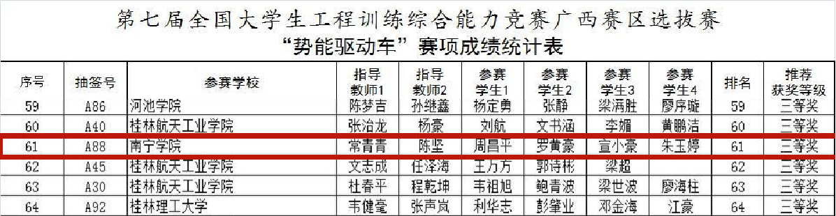 南宁学院团队获势能驱动车赛项 三等奖1项