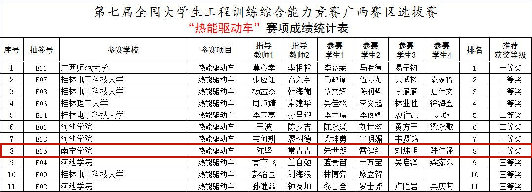 南宁学院团队获热能驱动车赛项 三等奖1项