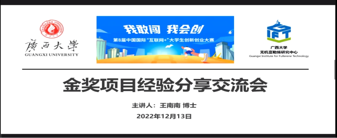 2022年12月13日,南宁学院创新创业教育学院特邀英国埃克塞特大学材料科学与工程学博士、广西大学硕士生研究生导师、自治区科技厅专家库专家、南宁市高层次人才王南南来我校开展了一场主题为《“互联网+”大赛金奖项目经验分享》的“来创吧”创新创业沙龙。受疫情影响,此次活动以线上形式开展。沙龙嘉宾王南南博士在线上与300余名同学完成了一场精彩纷呈的金奖项目经验分享会。