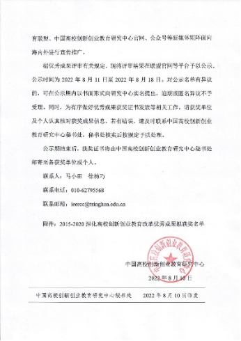 2015-2020深化高校创新创业教育改革优秀成果公示名单