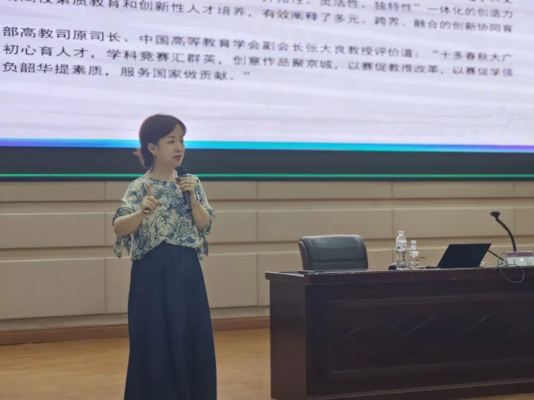 其次,丁教授结合了往届大广赛优秀作品进行案例讲解,让在座师生能够更好地了解和把握参赛规则、参赛技巧、作品设计。