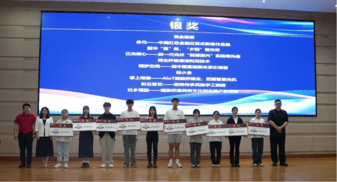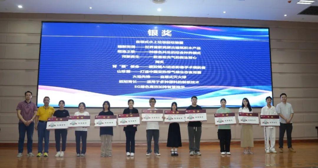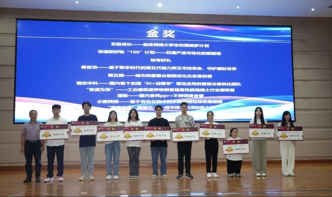 随后,主持人宣读本次大赛获奖的项目名单。本次校赛共评选出金奖10项、银奖20项、铜奖30项。专家嘉宾及陈雄章副校长为获得本次校级选拔赛金奖和银奖的项目团队颁发奖牌。