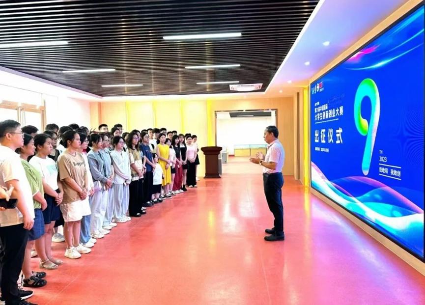 陈雄章副校长在出征仪式上为参赛团队们打气