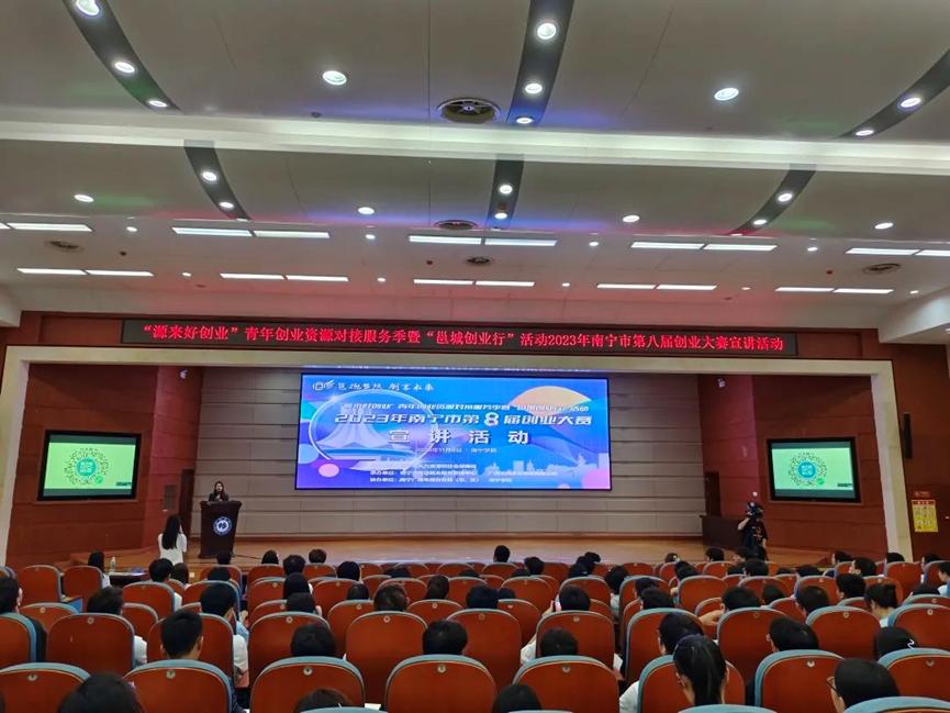 2023年11月9日,“源来好创业”青年创业资源对接服务季暨“邕城创业行”活动——2023年南宁市第八届创业大赛宣讲活动南宁学院站圆满结束。本次活动主要为潜在参赛者提供深入了解大赛的机会,为他们的创业梦想提供更多支持和指导,来自全校的500余名同学参与了此次活动。