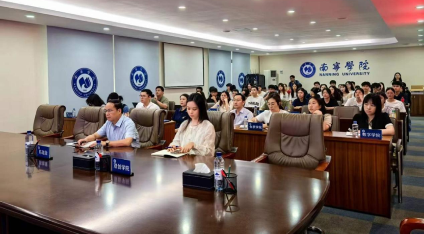 2024年6月18日,中国国际大学生创新大赛(2024)“数广集团杯”广西赛区选拔赛暨“青年红色筑梦之旅”活动启动仪式以线上与线下相结合的形式举行,在广西科技大学设主会场,我校《挺起中华脊梁》项目师生团队前往主会场参加启动仪式。同时,我校也在行政楼322会议室设立分会场,通过线上直播方式观看启动仪式,南宁学院陈雄章副校长、创新创业教育学院黄如副院长、各二级学院分管双创工作的领导、参赛项目团队的师生代表等共计73人出席本次活动。