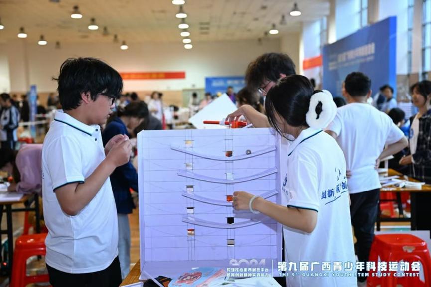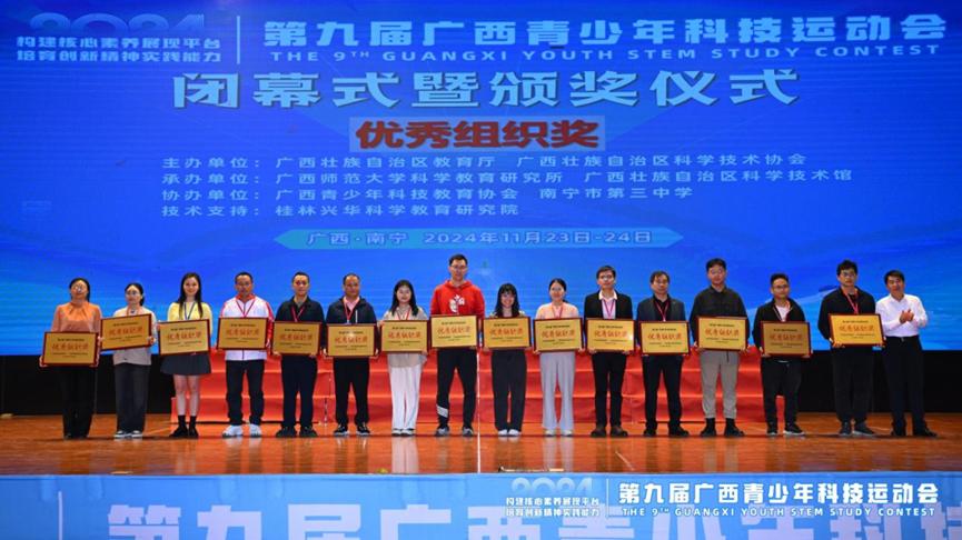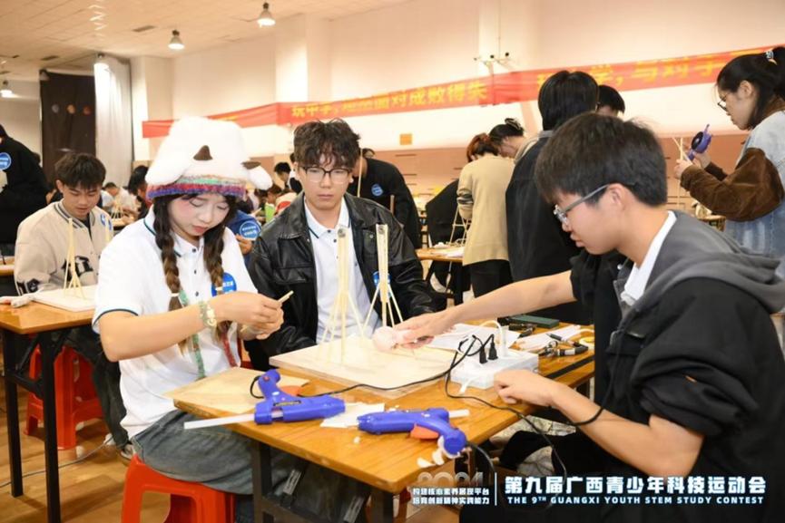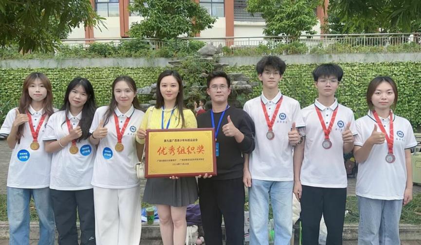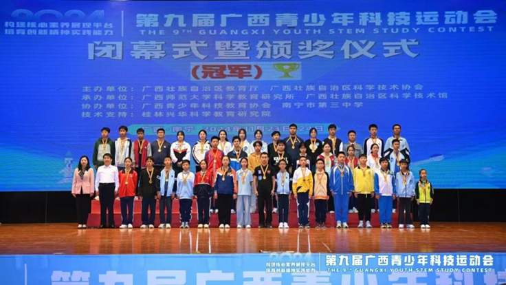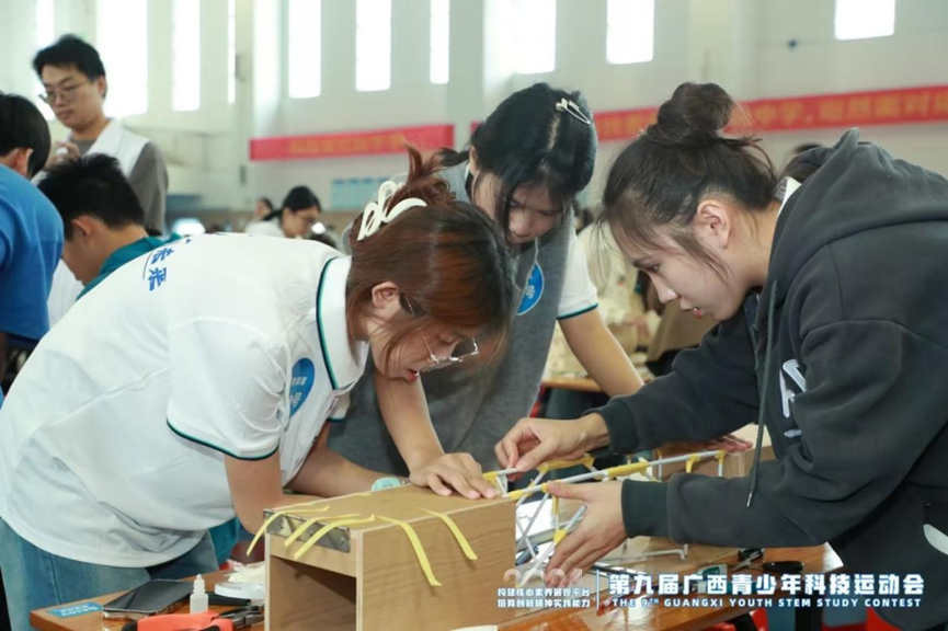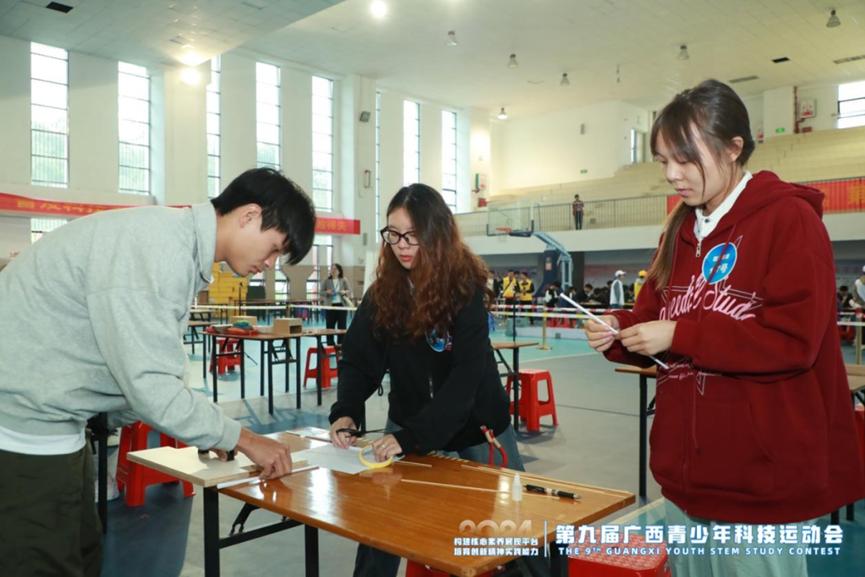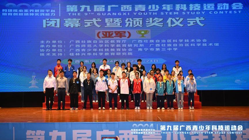 2024年11月23日至24日,第九届广西科技运动会在南宁市第三中学举行。我校通过全校选拔,派出了10支参赛队伍,凭借卓越的科技创新能力和团队协作精神,斩获一等奖3项,二等奖2项,三等奖2项。其中,两支队伍分别获得“纸桥承重”赛项大学组冠军、“自制小车竞速”赛项大学组亚军的优异成绩。我校荣获“优秀组织奖”。