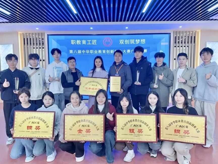 2024年12月9日-10日,第八届中华职业教育创新创业大赛广西赛区在广西城市职业大学举行。我校荣获金奖1项、银奖1项、铜奖2项。其中,“新农科技”项目团队获得本科组金奖、“生死航线”项目团队获得本科组银奖、“草本天成”及“生态打印”项目团队获得本科组铜奖的优异成绩,同时我校荣获“优秀组织奖”。