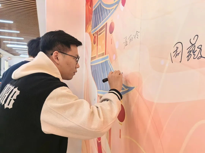 创业导师们在活动签名墙前合影留念