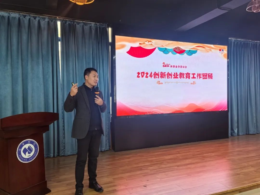 2025年1月8日下午,“跨越山海,筑梦绽放”2025年新春金导茶话会在大学生创业园二楼226室新商科赛训中心隆重举行,南宁学院副校长陈雄章、扬州工业职业技术学院创新创业学院院长王盛、创新创业教育学院院长马骏,以及创新创业教育指导教研室核心教师、《创新创业基础》课程授课教师共计40余人出席本次活动,共同回顾往昔成就,展望未来征程。创新创业教育学院副院长黄如博士主持本次活动。