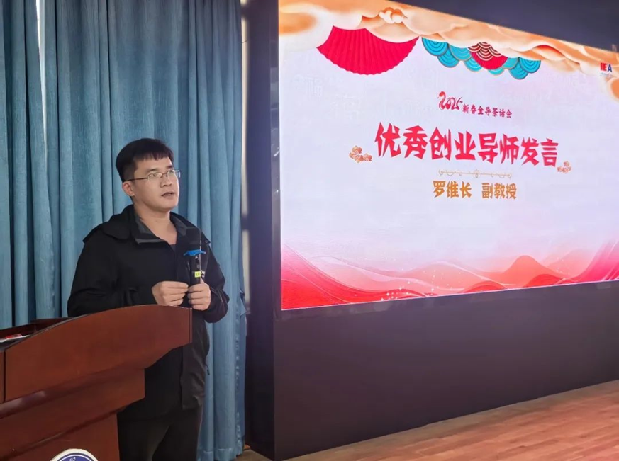 随后,优秀创业导师代表创新创业教育学院罗维长老师上台发言。罗维长老师结合自身多年的教学与指导经验,分享了在创新创业教育过程中的感悟与心得。他强调了创新创业教育对于学生成长的重要性,以及导师在引导学生探索创新创业之路中的关键作用,为在座的创业导师们提供了宝贵经验。
