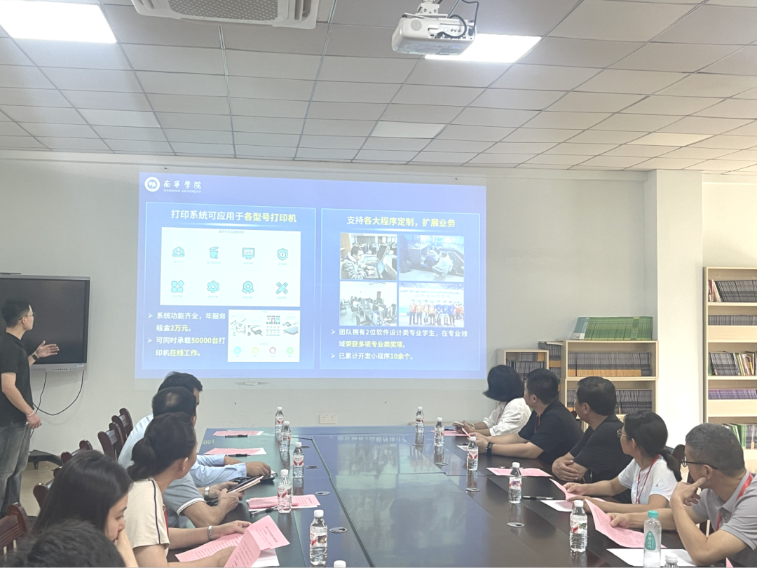 随后,调研组视察了南宁学院大学生创业园,重点视察退役返校大学生庞锡程创办的南宁市六点半科技有限公司。庞锡程详细介绍公司发展情况,汇报了个人荣获创新创业奖项国家级11项、省部级36项、校级48项的成绩。其“退役不褪色”的拼搏精神赢得了调研组的一致赞赏。