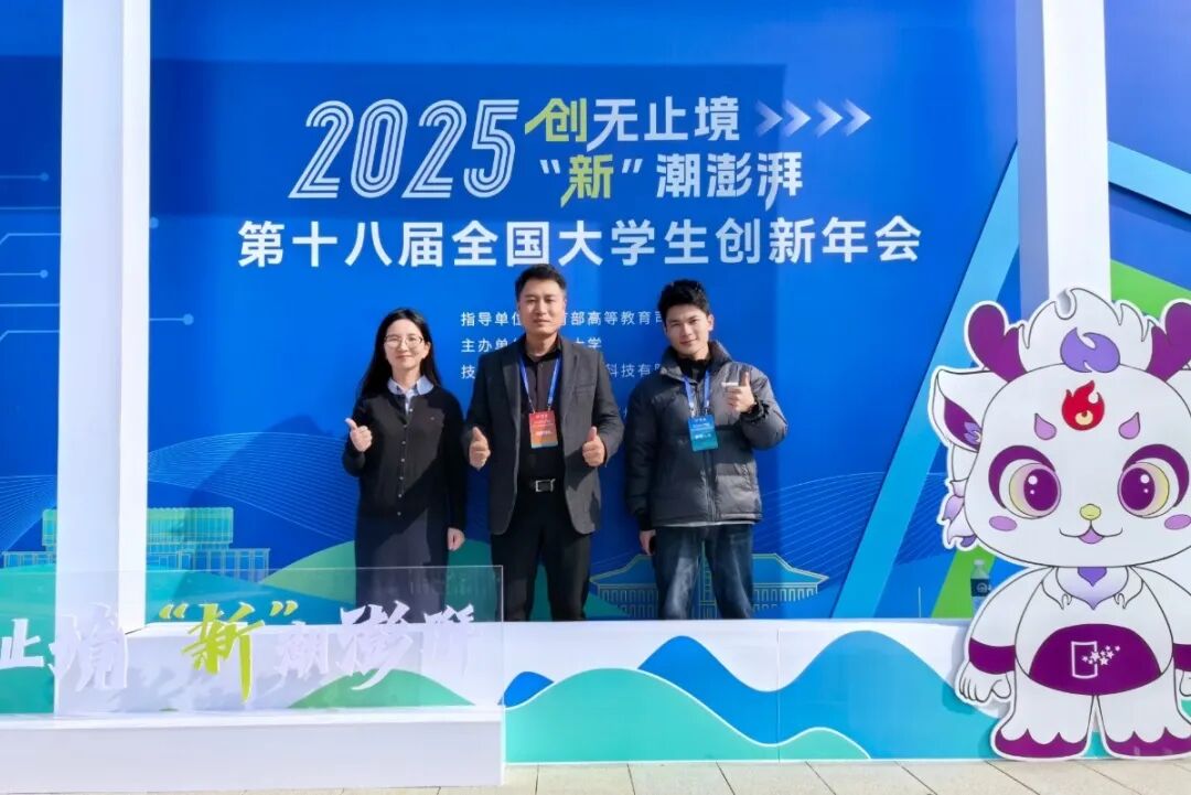 2025 年 11 月 22 日至 23 日,第十八届全国大学生创新年会(以下简称“国创年会”)在南京大学苏州校区成功举办。我校“新农科技”项目入选“国创年会”展示名单,项目指导老师马骏、负责人庞锡程及大创管理人员李梦茹老师等受邀参会。