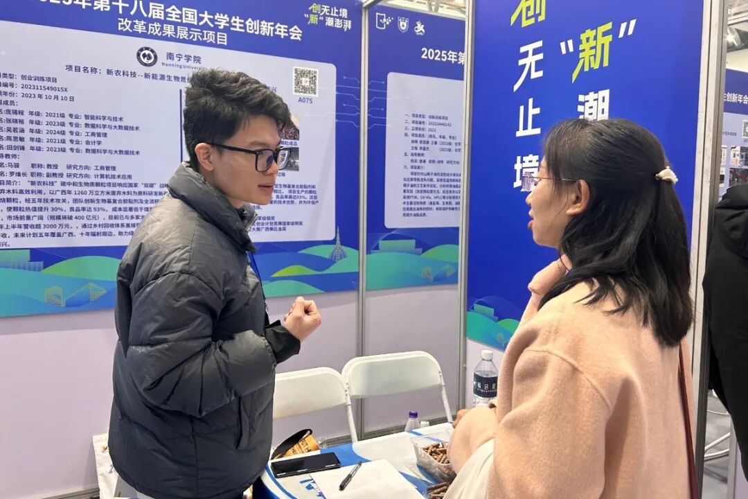 本届年会以 “创无止境・新潮澎湃” 为主题,设置创新创业项目成果展示、学术论文交流、创业项目推介三大板块。其中,创新创业项目成果展示板块经部属高校及地方教育厅推荐、组委会组织专家遴选,最终确定 250 个项目入围。广西共有 5 个项目入选创新创业项目成果展示板块,“新农科技”项目凭借丰厚的创新实践成果占据一席。