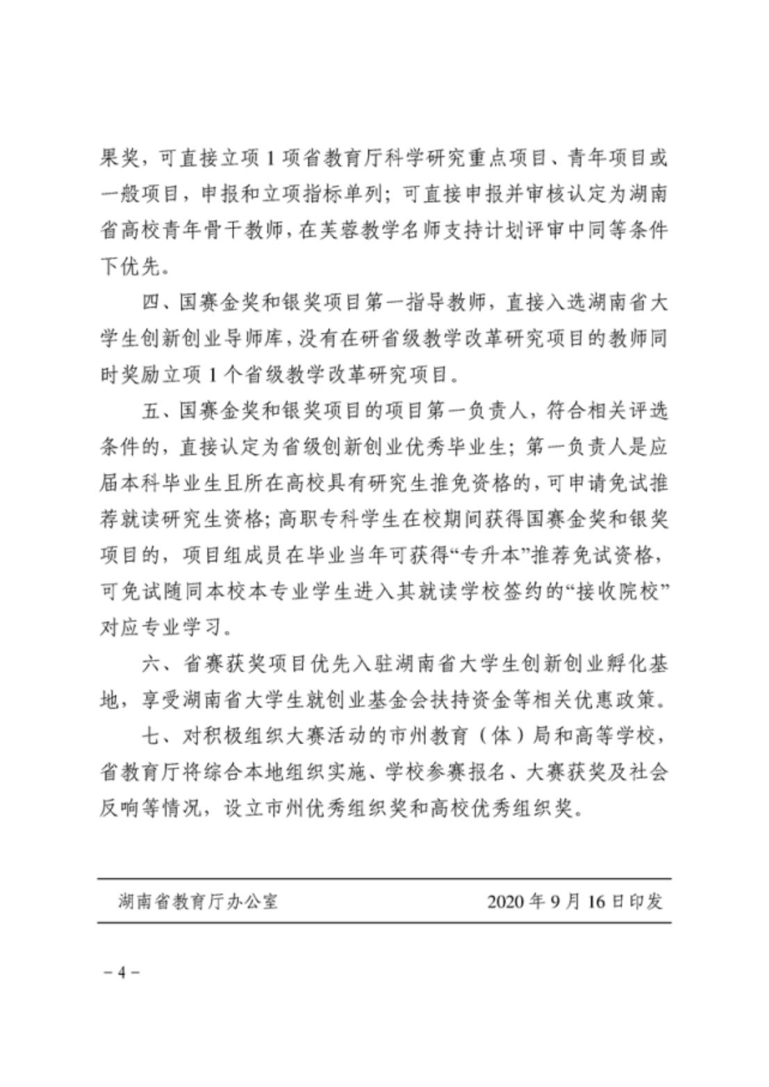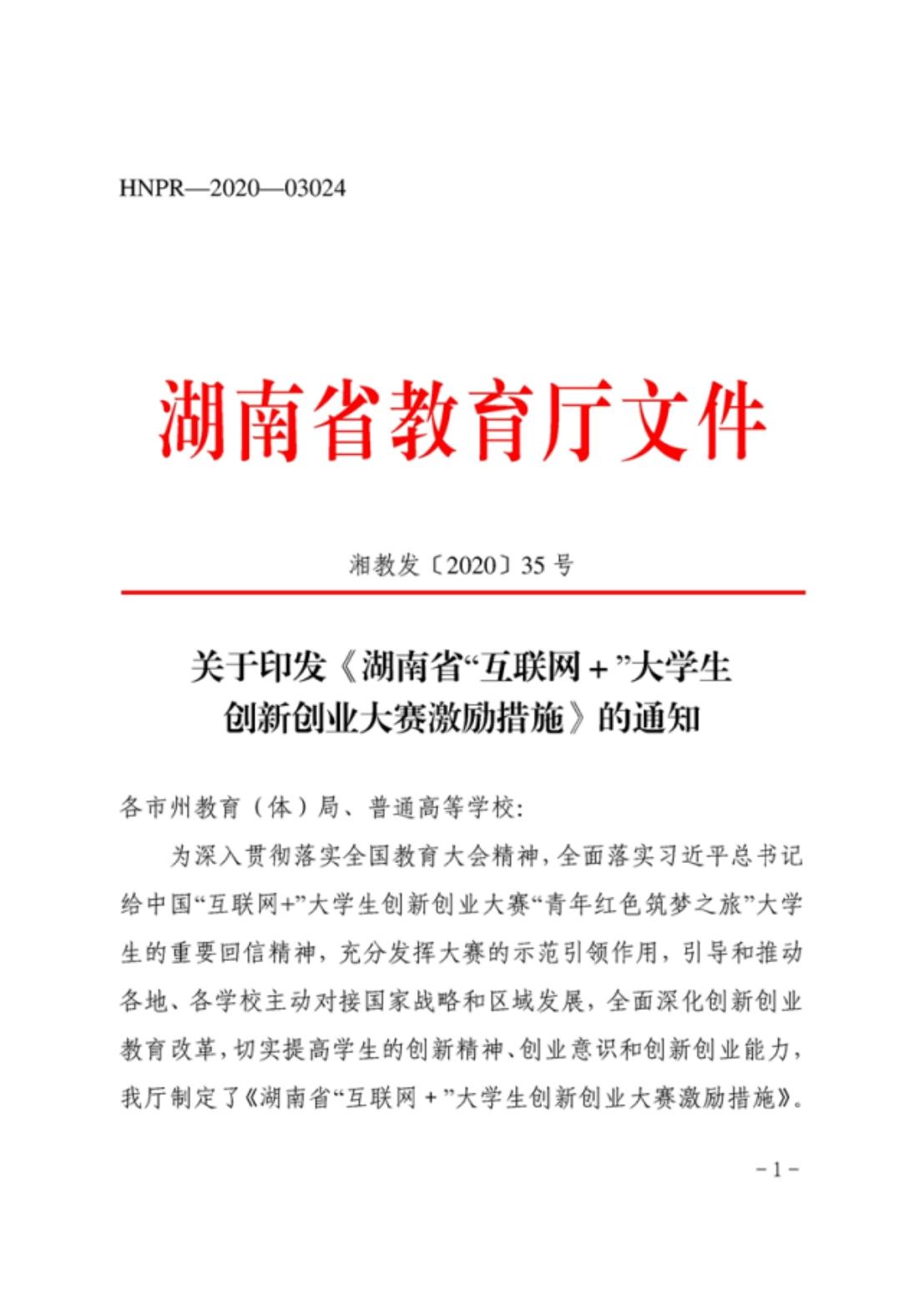 关于印发《湖南省“互联网+”大学生创新创业大赛激励措施》的通知