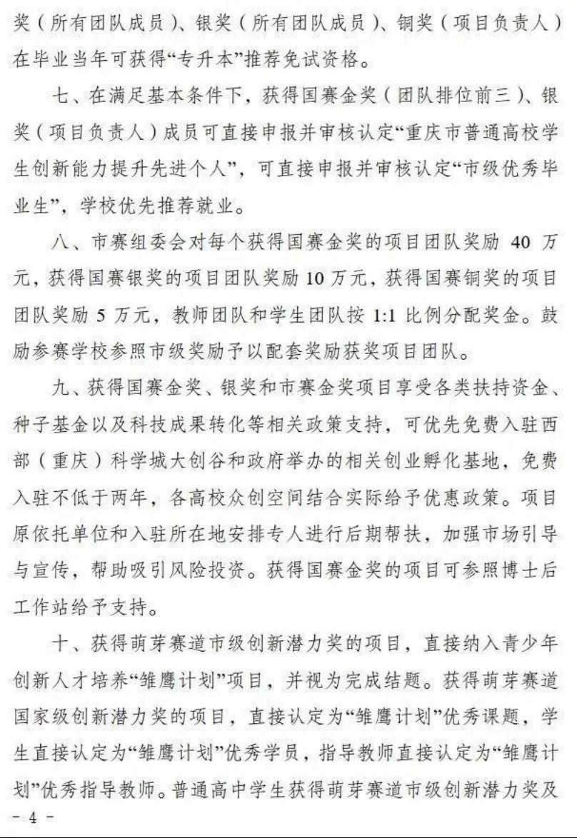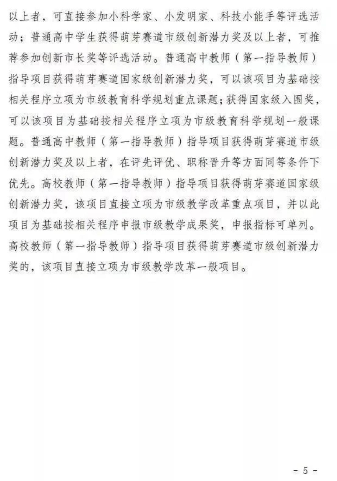 (十一)普通高中学生获萌芽赛道省级及以上奖项者,优先推荐参加青少年科技创新大赛、明天小小科学家等评选活动。