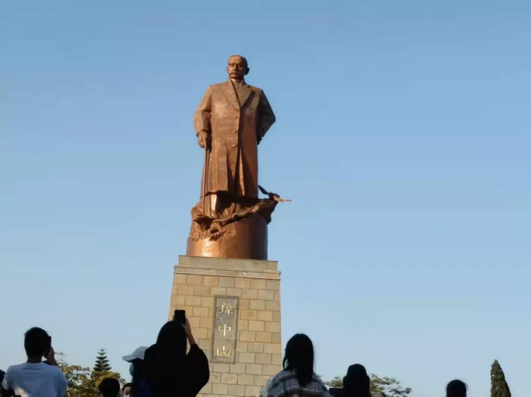 第五站同学们来到钦州港仙岛公园钦州港仙岛公园,其又称为逸仙公园,位于钦州港龙门群岛七十二泾景区入口处的龟岛上。登岛远眺,钦州港区尽收眼底。该公园主要是为了纪念孙中山先生当年提出在钦州湾建设南方第二大港的宏愿而命名的,孙中山号为逸仙,目前公园在设立国内最高的孙中山纯铜材质的铜像来纪念孙中山先生。同学们瞻仰了孙中山先生铜像,缅怀孙中山先生对钦州港发展的殷切期望。