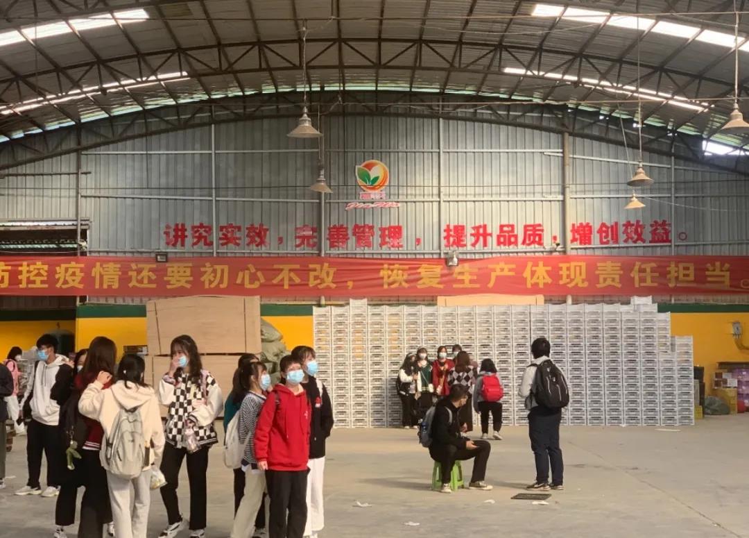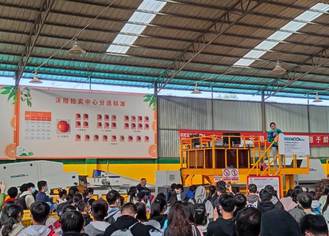 第一站,大家来到了武鸣特色产业沃柑产业园,参观了嘉沃生产车间和园区。带着前置问题,如武鸣沃柑的环境要求、保鲜条件、销售市场、年销售额、竞品对比、深加工品类等,同学们进入生产车间实地观察,听工作人员讲解,对沃柑的加工流程有了一定的了解,之后在参观园区成果展示的时候也了解到沃柑的起源和发展、种植技术、武鸣沃柑的独特优势、嘉沃产业园的战略布局以及沃柑产业对武鸣乡村脱贫和振兴的促进作用。