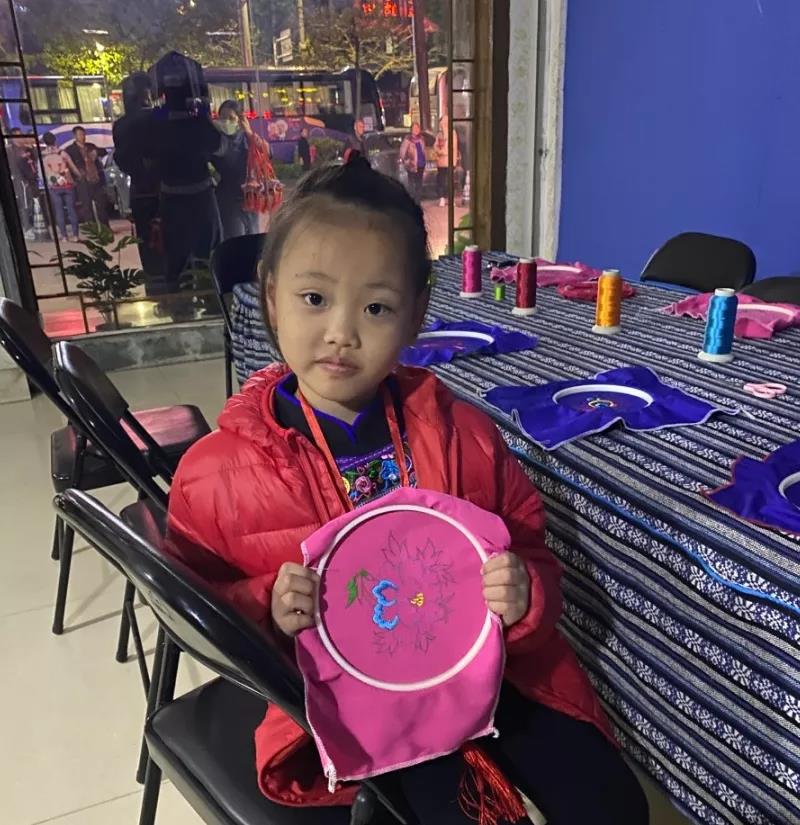 第二,武鸣纳福彩绣坊,一下车陆奶奶和阿姨们就热情地为我们戴上了她们制作的绣球。她们看到我们的到来,眼里散发着光,就像看到了希望一样。纳福彩绣是广西壮族独有的刺绣技艺,是广西壮族文化的重要标志,也是壮族的传统技艺。但它也面临着传统技艺得不到传承的问题。一套十分精美的新娘服饰十几万的价格让普通人望而止步,收藏价值远远大于使用价值,所以大部分的人根本不会去了解它的技艺。