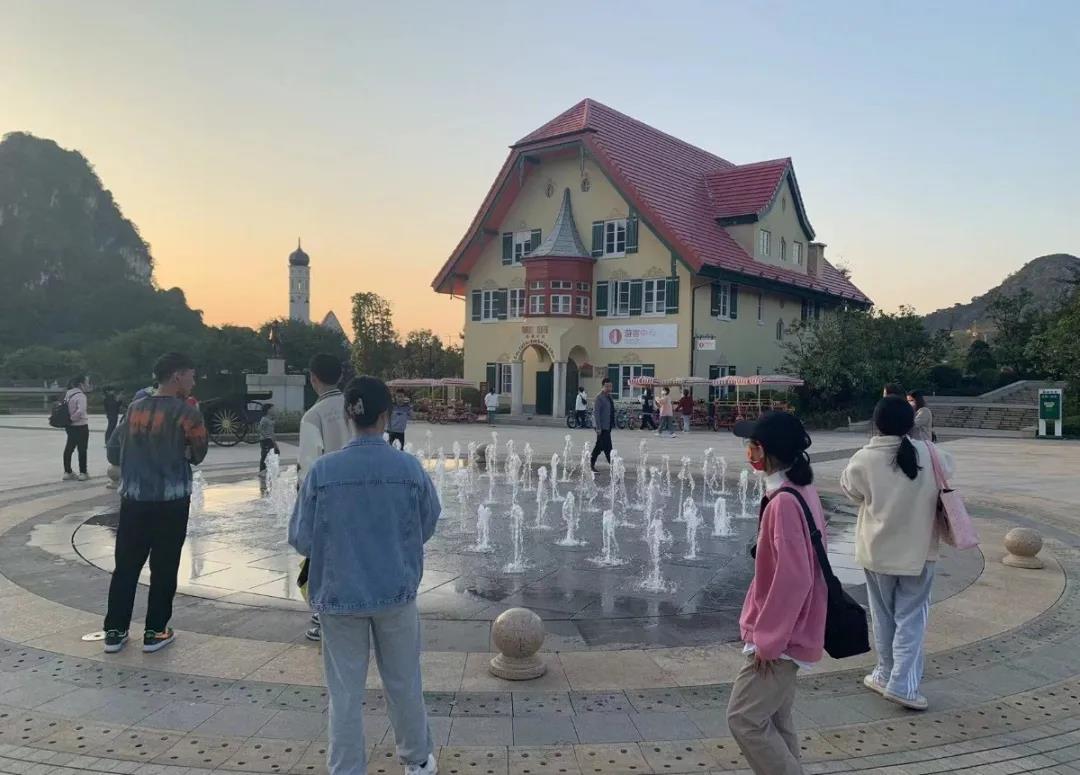 此次红色筑梦之旅有很多值得留恋的地方,比如伊岭岩壮文化大观园之行,壮族待客之道令我这个北方人感到无比震撼,也让我对壮族文化产生了兴趣。宛如童话世界一般的梦想小镇,欧式建筑给我留下深刻的印象,让我们开阔眼界,了解到欧洲街头风情。夕阳下火红的穗冠花田让人体验到一场视觉盛宴,更让我们的心灵得到慰藉。