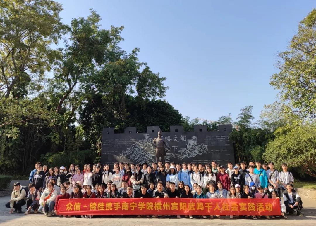 2021年12月4日,在创新创业学院副院长黄如、任课老师冯志毅和孙迅的带领下,创新创业基础课程学生250余人来到了有着“中国壮乡”美誉之称、壮族发源地之一的武鸣,开展“青年红色筑梦之旅”之振兴之旅社会实践活动。