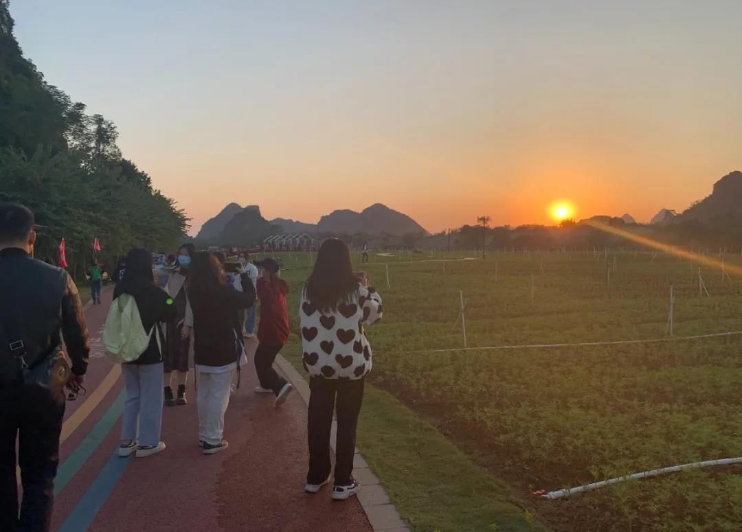 步入壮文化大观园,唢呐鸣鼓、古物讲解、山歌对唱、米酒香甜、壮族铜鼓,壮族服饰、壮族遗物,不禁感慨民族文化的源远流长。踏入梦想小镇,为建筑惊叹,被风景折服,梦幻花海,伴随落日,一片美景尽收眼底。
