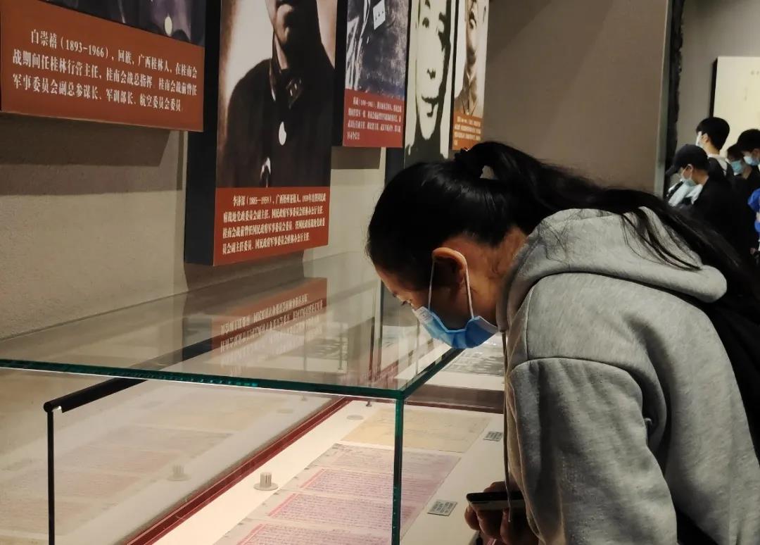 此次实践的第一站是昆仑关。昆仑关战役是抗日战争的大型战役之一,也是桂南会战国民革命军投入战力最强规模部队的一场战役。在这里,同学们无一不对昆仑关博物馆中解放军捐献的坦克和飞机感到震撼。大家仔细端详博物馆里的每一件器物,专注的观看馆内演放的战役片段,所有人的目光闪耀着对抗战烈士的敬畏和崇敬。
