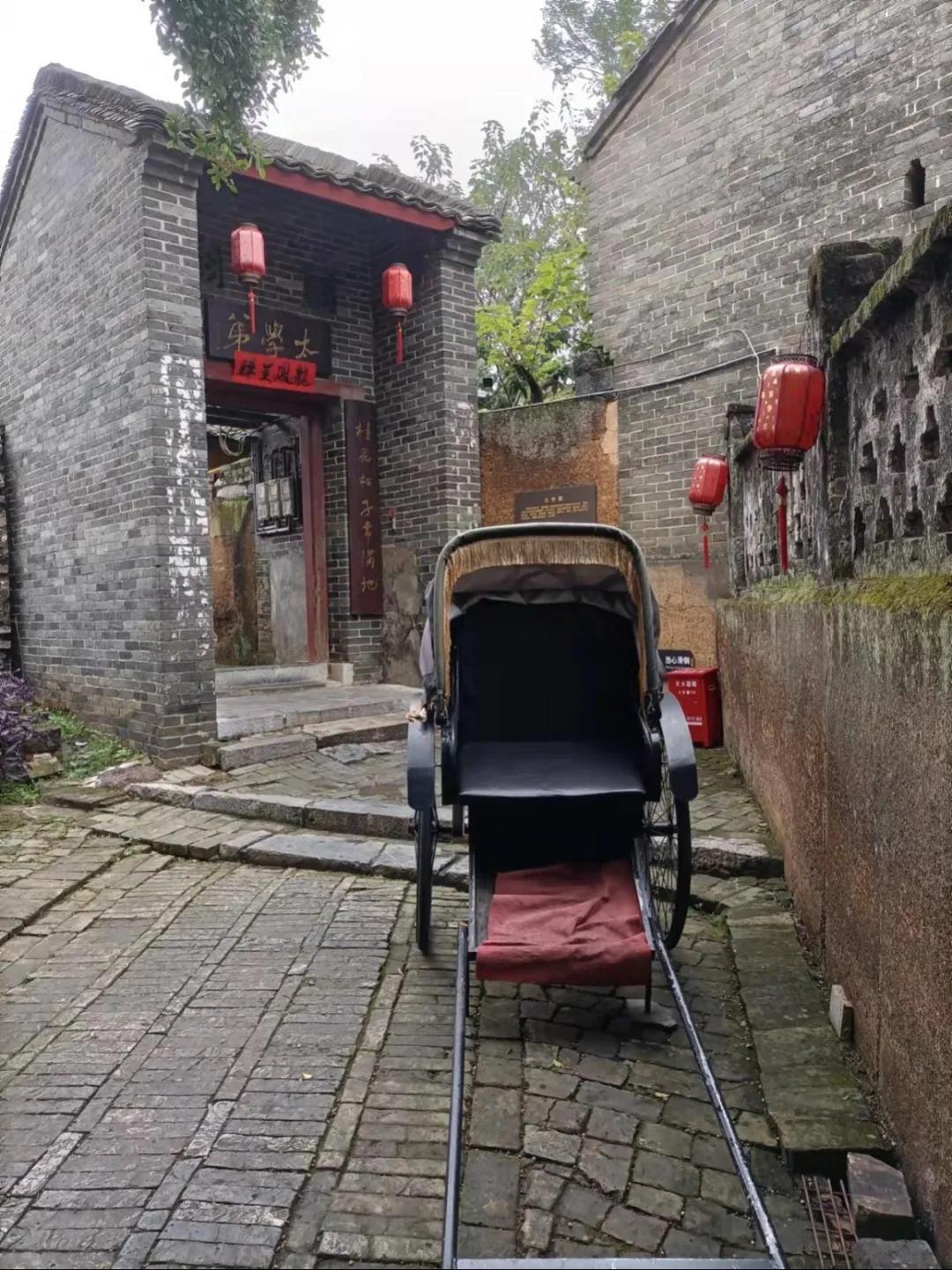 第三站大家来到稻花香里蔡氏古宅。蔡氏古宅是保存较为完好的古建筑群,堪称中国岭南古建筑的瑰宝。从稻花香里一路走到蔡氏古宅,每一个房屋上的墙画,都体现了村民的生活淳朴。走进蔡家大院,同学们情不自禁的感叹大院的古色古香,院内是大青石和青砖铺就,大院建筑群分为"老屋"和"新屋"两部分共三处,均为三进式青砖瓦房。蔡家古宅虽经历诸多风雨仍保留完整,同学们都为古建筑的艺术和智慧所折服。