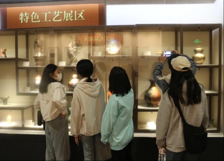 同学们观赏坭兴陶作品
