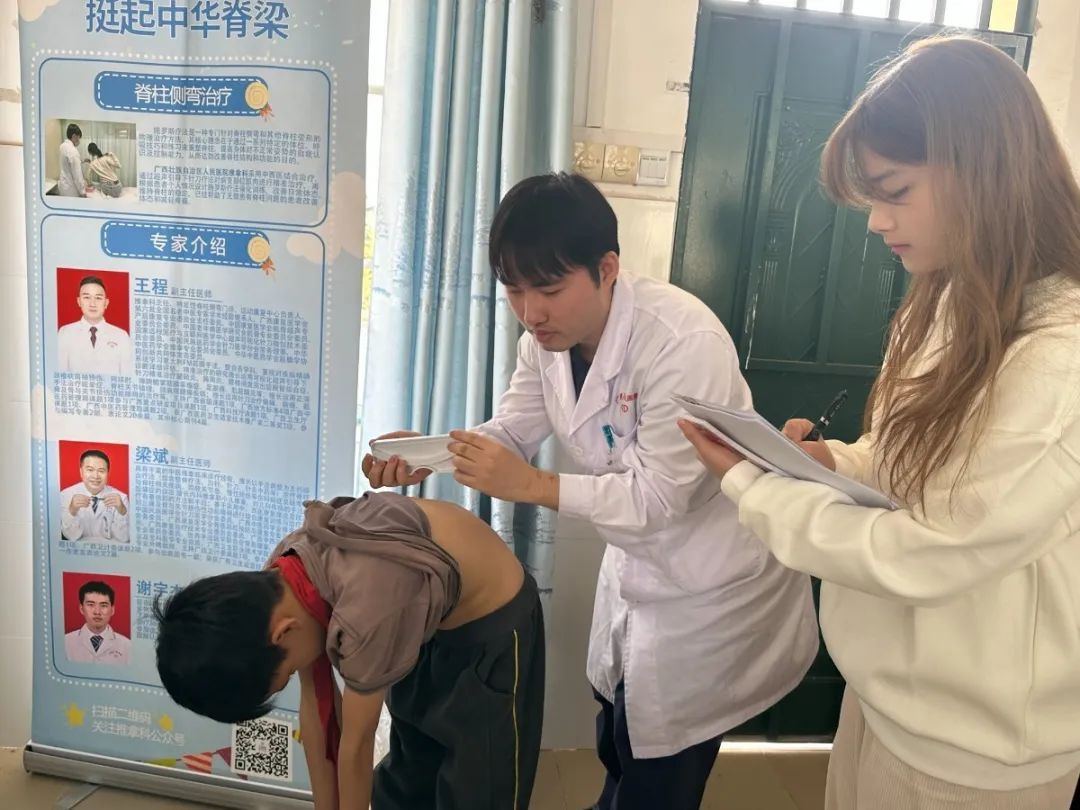 2025年1月10日,在南宁市邕宁区教育局、自治区人民医院的支持下,我校青年红色筑梦之旅公益项目——“中华脊梁”西部民族地区脊柱侧弯筛查行动公益团队走进邕宁区新江镇,分别为华联小学和那了小学学生送去迎蛇年新春健康礼包,对两所学校的学生进行了预防脊柱侧弯公益宣讲和脊柱侧弯公益筛查,受到学生的欢迎。
