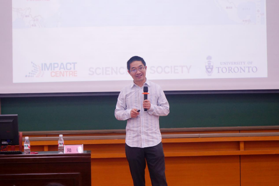 讲座伊始,陆诚博士通过图片给在座师生介绍了多伦多美丽的城市风貌和多伦多大学古老的校园建筑,以及他所隶属的多伦多大学创新中心(Impact Centre)。接着,陆诚博士从科研如何转化成实际应用这一过程的角度出发,围绕创新中心建立的初衷、如何让创新加速、解决创新的差距等几个方面展开阐述。陆博士通过自己所研究的光催化剂领域的例子,用生动的语言为在场师生讲授如何把实验研发结果运用到商业中去,从而实现科研的成果转化。