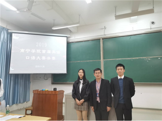 2019年12月2日,南宁学院首届英语口语大赛圆满落幕。比赛分初赛、复赛和决赛三个阶段进行,来自全校各二级学院将近200名选手参加了本次比赛。选手们在比赛中青春洋溢,各展风采,来自信息工程学院19级物联网工程专业学生吴宗霖、艺术设计学院18级环境设计专业学生黄榕一路过关斩将,在决赛中的演讲思路清晰,观点新颖,表达流畅,最终脱颖而出,双双荣获大赛特等奖。