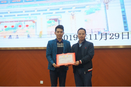本次讲座由通识教育学院美育教研室主任樊原朱老师主持,在讲座正式开始之前通识教育学院副院长蓝志军副教授给主讲嘉宾颁发南宁学院美育教师的聘书。