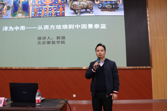 2019129日晚,南宁学院通识教育学院在大学生活动中心103室举办了敷文学堂之洋为中用--从西方珐琅到中国景泰蓝主题讲座。本次讲座邀请到北京服装学院、清华大学美术学院城市建设艺术设计研究所艺术总监、北京2008年第二十九届奥运会、残奥会形象景观设计师、MPC形象景观经理、北京市教委专业职称评审委员会专家、“北京大工匠”评审专家郭强博士、教授作为主讲人,讲座由通识教育学院副院长蓝志军副教授主持,通识教育学院美育教研室主任樊原朱老师、教务科干事邱雅玥老师、继续教育学院综合科干事刘宁老师以及100余名学生参加了本次活动。