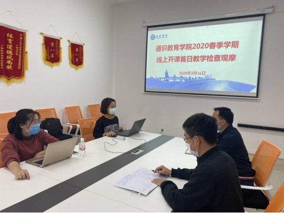 为积极响应及落实教育部“停课不停教、停课不停学、教学质量标准不降低”的教学工作要求,按照“标准不降、形式多样、方式灵活、强调效果、保证质量”的原则,进一步做好2020年春季学期各项教育教学工作,保障线上教学有序进行,2020年3月16日上午,通识教育学院在体育教研中心会议室召开了线上开课首日教学督察会。副校长陈雄章教授、通识教育学院院长杨小凤副教授、副院长吴杏教授、副院长蓝志军副教授以及英语教研室主任张天乾教授参加了本次会议。
