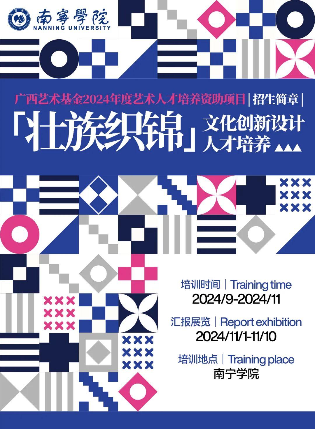 广西艺术基金2024年度艺术人才培养资助项目《壮族织锦文化创新设计人才培养》现开始面向广西区内招收学员25名。