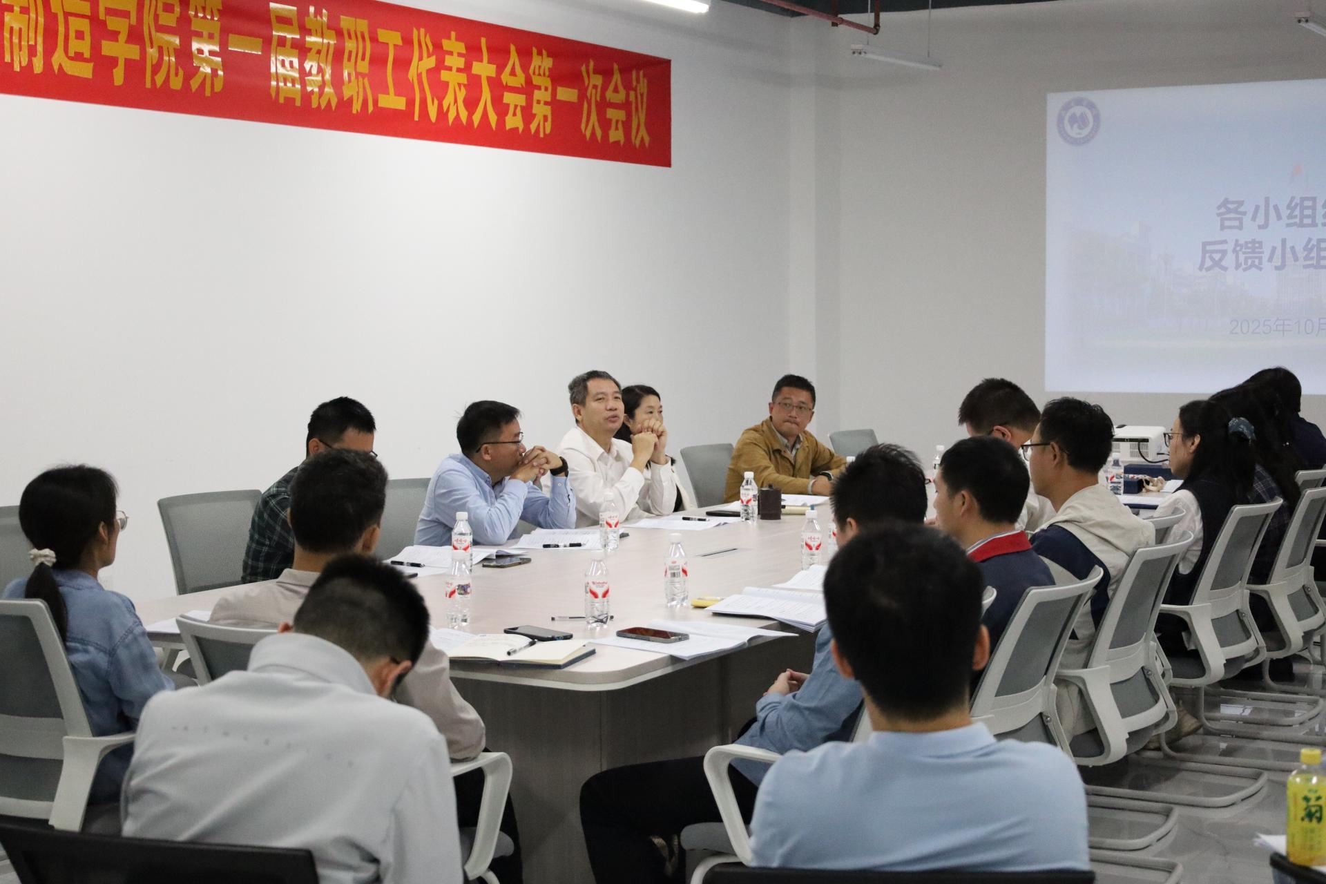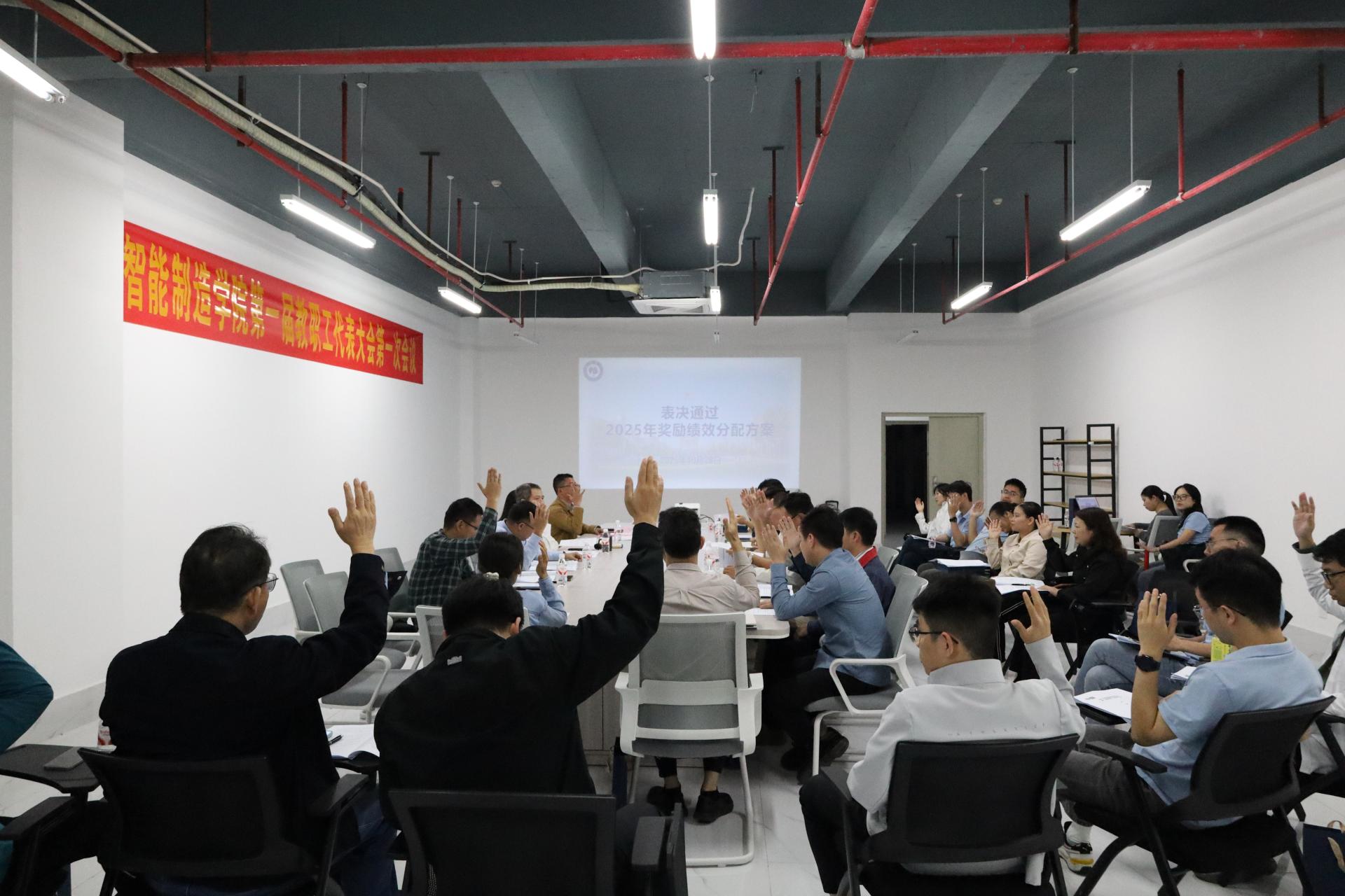 大会进入第二阶段,各组组长汇报讨论情况。同时,教职工代表审议通过了《智能制造学院2024年度工作报告》、《智能制造学院2025年奖励绩效工资分配方案》,大会在奏唱校歌后圆满落幕。