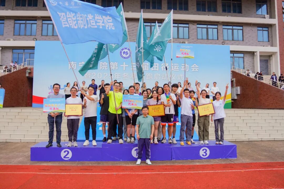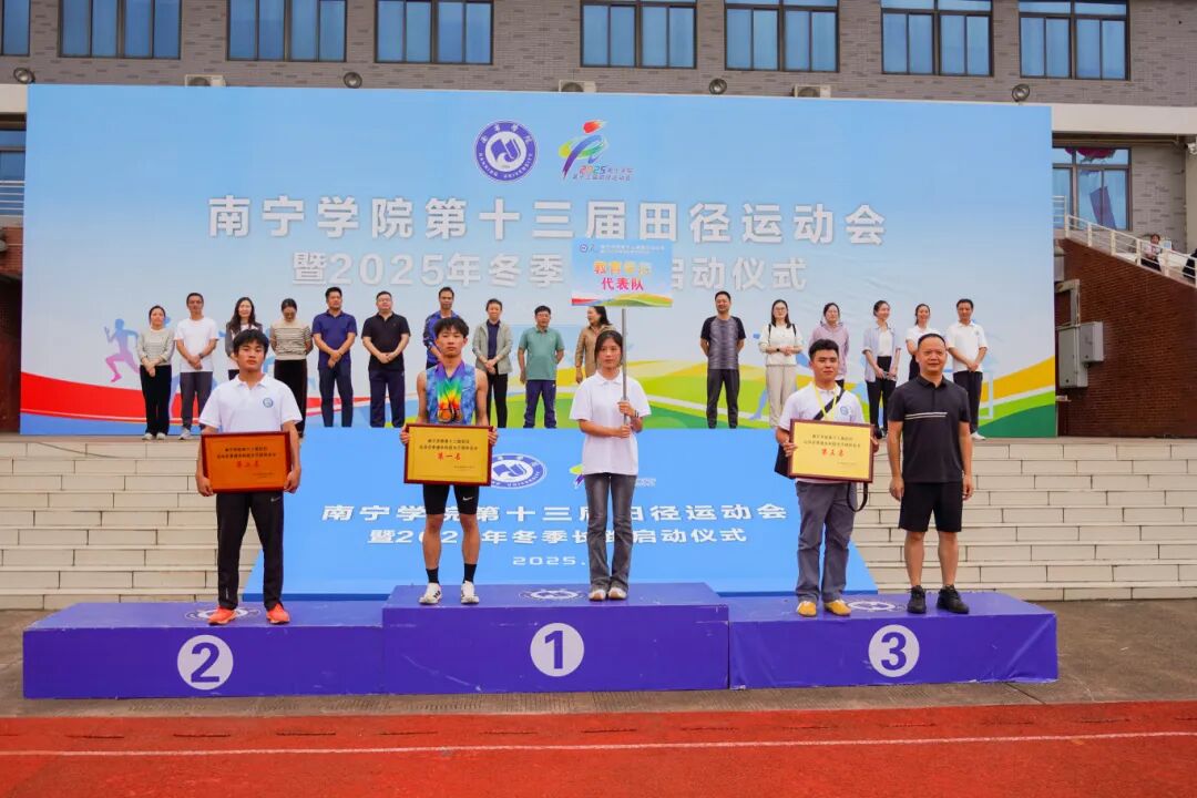 校长助理、体育工作委员会常务副主任赵田英在闭幕式致辞中表示,本届运动会中,全体运动员奋勇争先、顽强拼搏,裁判员秉公执裁、严谨细致,工作人员与志愿者恪尽职守、倾情奉献,各学院和部门通力协作、密切配合,共同营造了生机勃勃、活力四射的校园体育氛围。她希望全校师生以此次运动会为契机,树立“健康第一”理念,让体育锻炼成为日常习惯,让体育精神融入成长血脉,以更饱满的状态投入到学习、工作与人生征程中,为学校高质量发展贡献力量。最后,党委书记刘彪宣布南宁学院第十三届田径运动会正式闭幕。各代表队有序离场,本届盛会也在掌声中画上圆满句号。青春赛道无终线,奋斗脚步永向前。